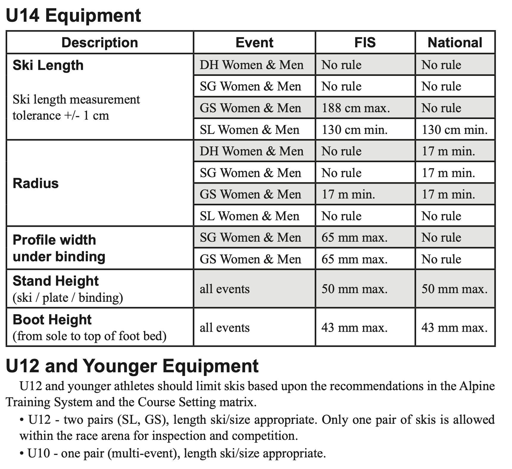 - Below is the Equipment Rules for U12 & U14 Racers.